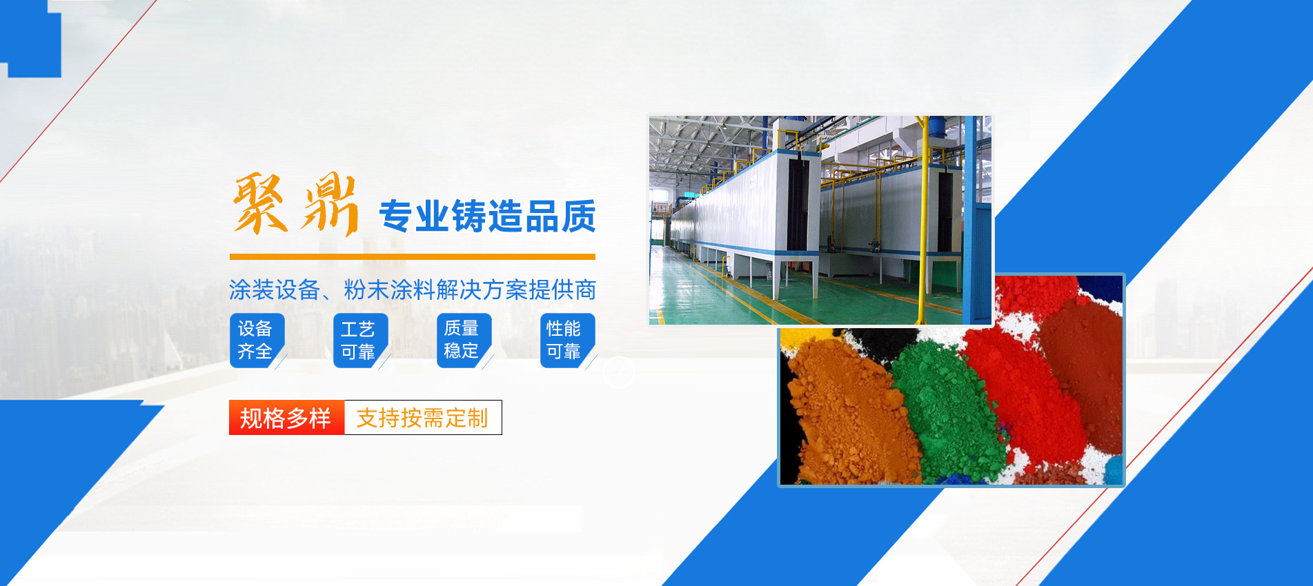 ?本公司是集涂裝設備、粉末涂料的開發、生產、銷售為一體的技術型專業企業,自創建以來,始終堅持以 “誠實守信,科學創新”為原則,致力于專用粉末涂料、涂裝設備的研發,并廣泛應用于家用電器、汽車、建材、散熱器、自行車、汽車、家具、健身器材、管道等諸多領域,根據各個領域產品的表面涂裝的不同要求,為其量身定做設計配方,批量生產不同表面效果,多花色,多功能的通用型和專用型系列產品。